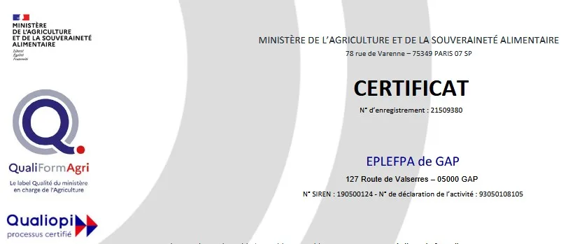 L’EPLEFPA de Gap certifié QualiFormAgri